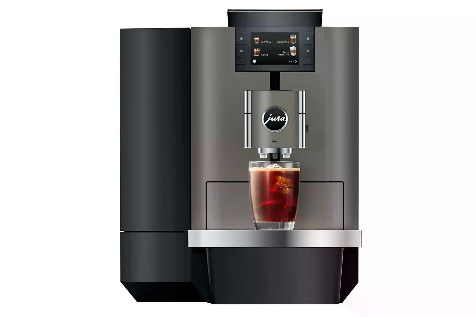 Die JURA X10 bringt Abwechslung in den professionellen Kaffeebereich. Sie bereitet bis zu 35 Spezialitäten auf Knopfdruck zu – darunter auch Cold Brews, die durch ein spezielles Kaltextraktionsverfahren frisch und aromatisch zubereitet werden. Damit eignet sich die X10 besonders für Büros, Selbstbedienungszonen, Kantinen und Pflegeeinrichtungen mit einem Tagesbedarf von bis zu 100 Tassen.