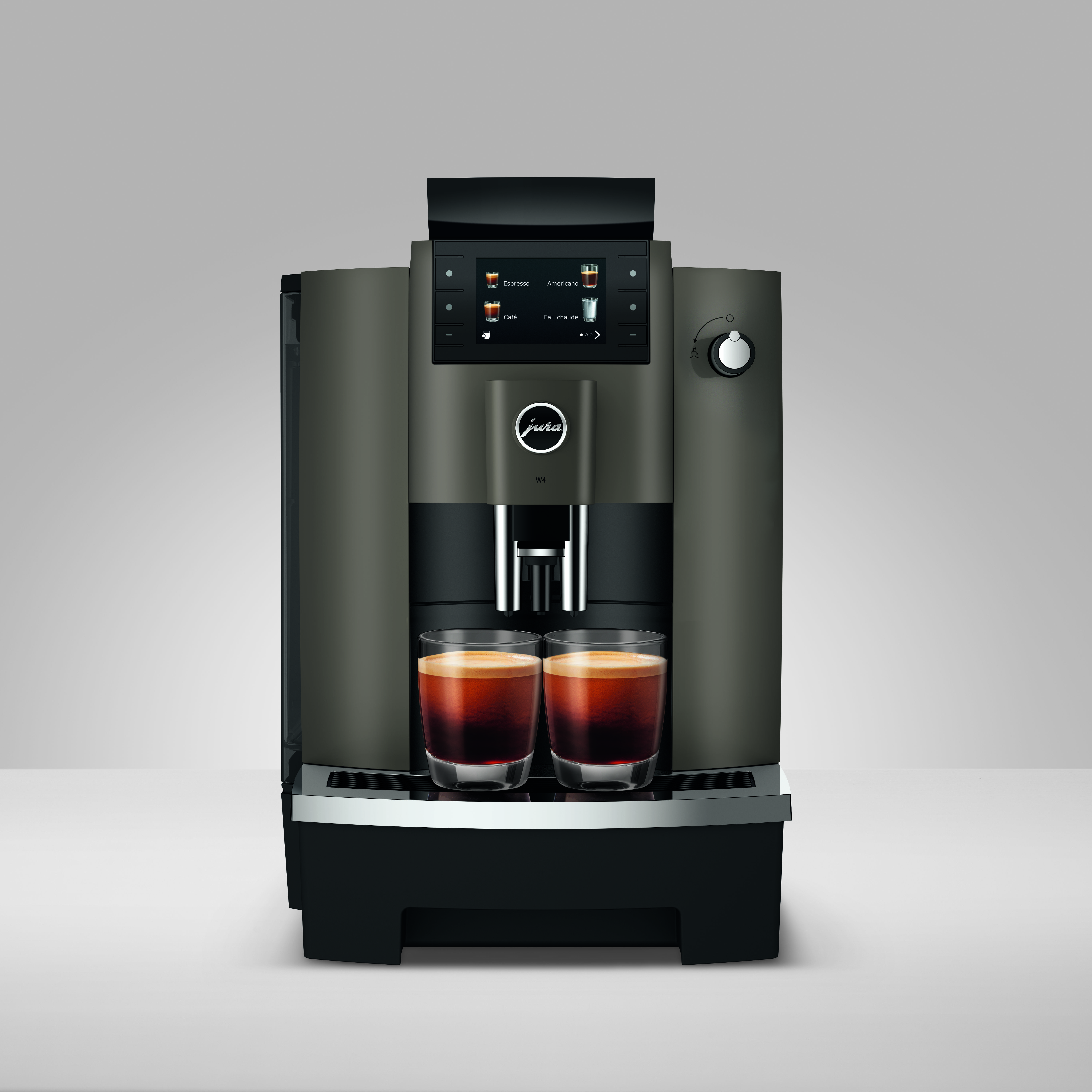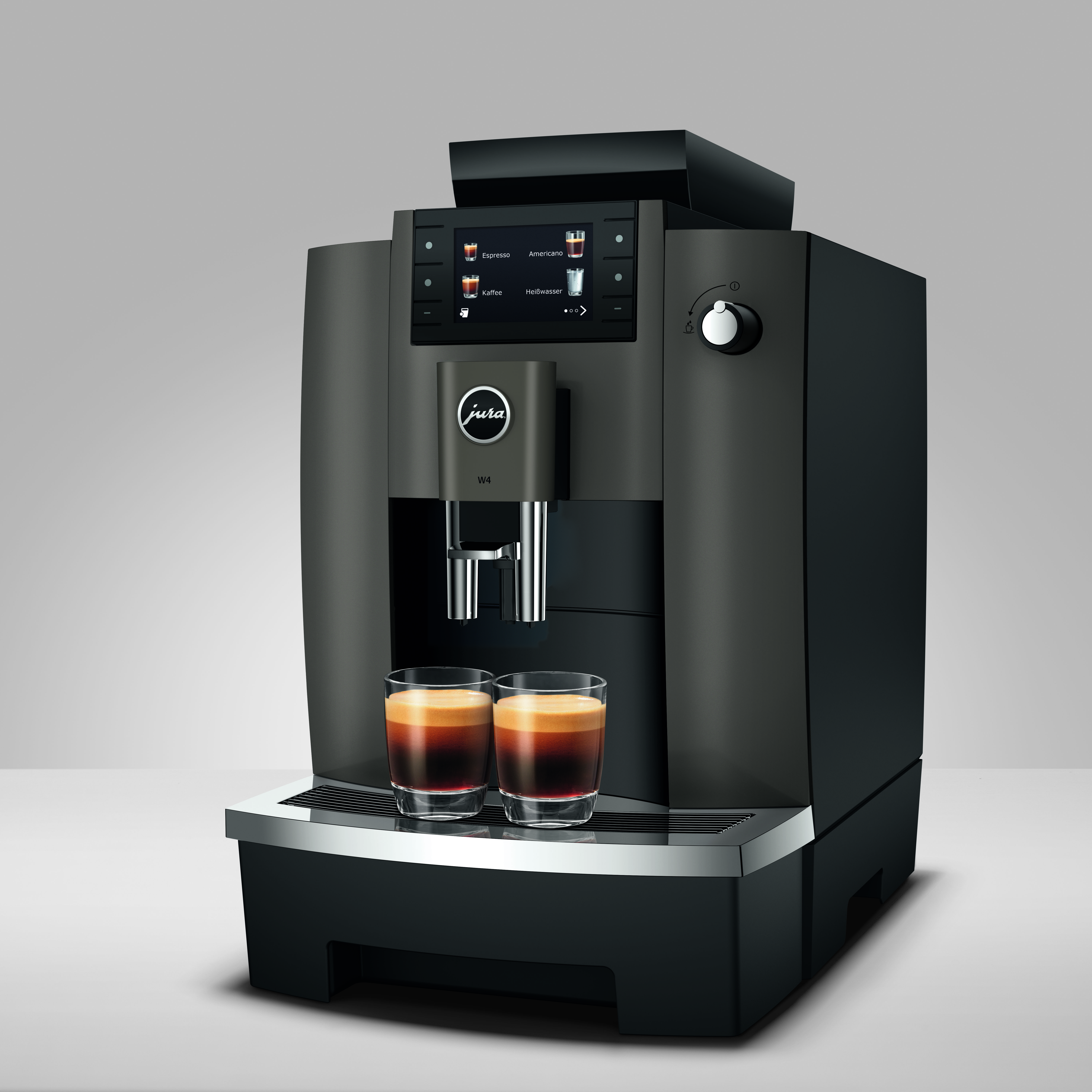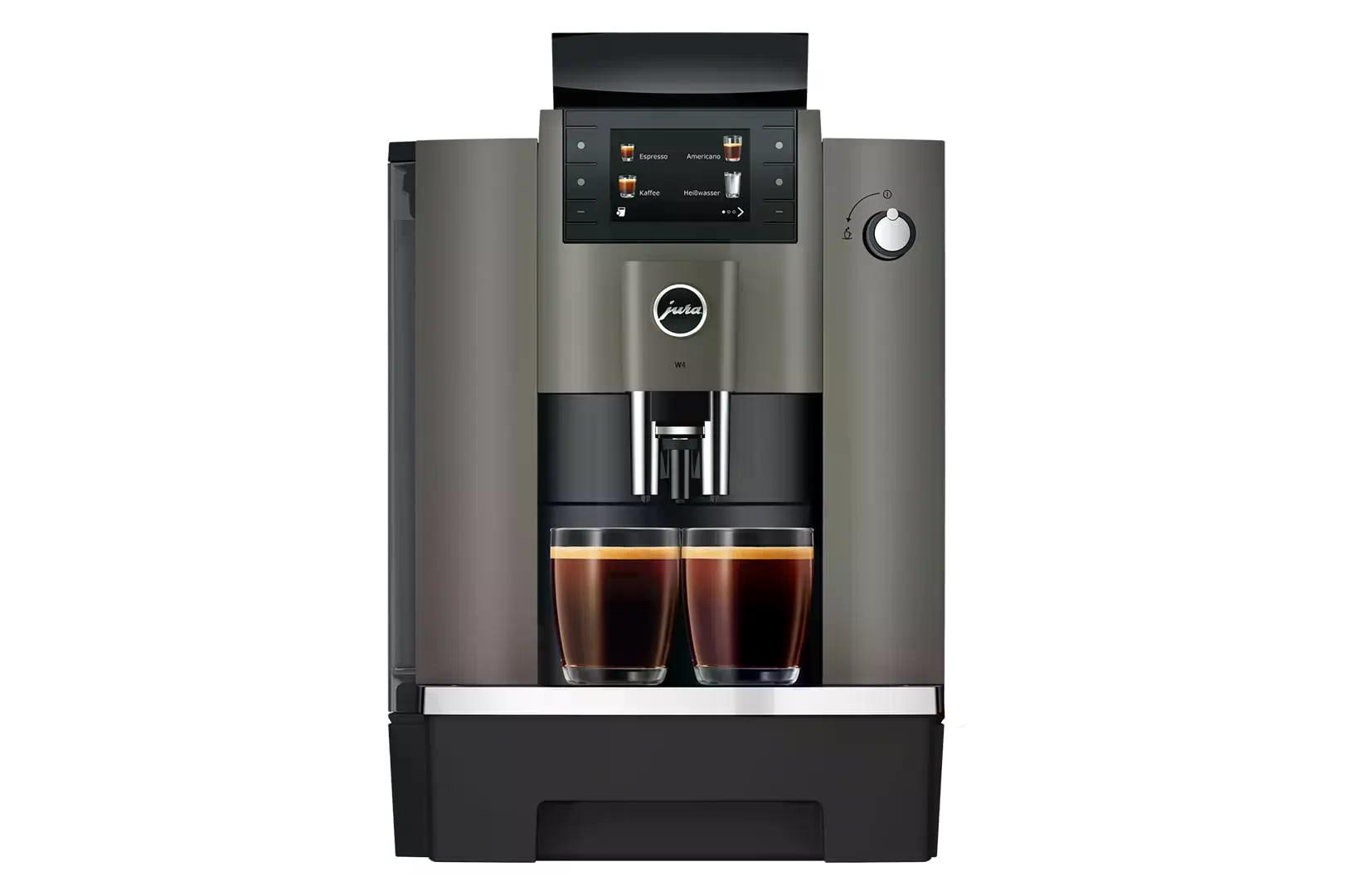Die JURA W4 ist ein kompakter Pure-Coffee-Vollautomat für den professionellen Einsatz. Mit einer Tageskapazität von bis zu 50 Schwarzkaffeespezialitäten eignet sie sich ideal für Büros, Werkstätten, Verkaufsräume oder Ateliers.